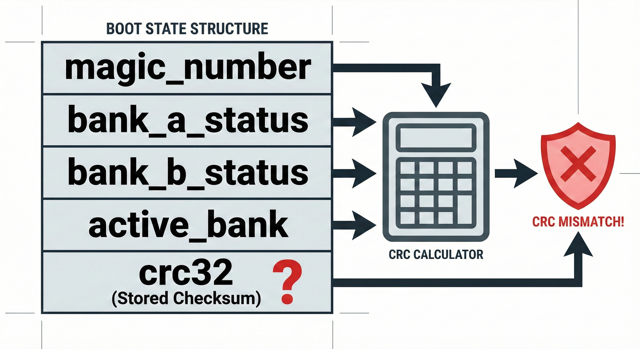 In Phase 4, I implemented the boot state structure with CRC32 integrity checking. The code looked correct, the logic made sense, and everything compiled without warnings.